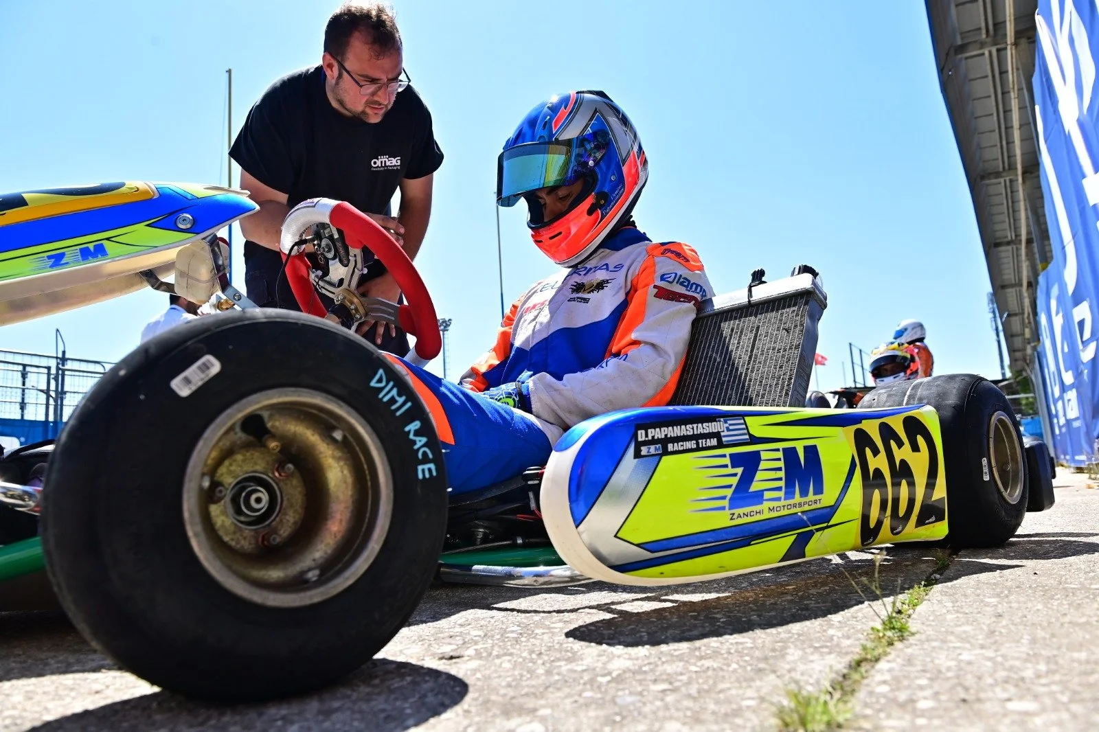 For Heat 1 I managed to be 6th by turn 3 and hooked my nose behind Diego Dagostino in 5th who I knew was one of the fastest karts on track. After a few turns though I realized I would not be able to follow him, my kart just didnt have the front end I wanted especially on cold tyres. I battled a bit with Danilo Lucchiesse who was 5th and managed to overtake him around lap 5. After that I run a bit on clean air and had solid pace matching the karts in Front. I finally brought the kart home in 4th place, but to my great suprise my front bumper had slighlty moved in, probably from some soft contact in the opening laps… Immediately I knew that the accompanying 5 second penalty would make me start for Heat 2 from the back again.